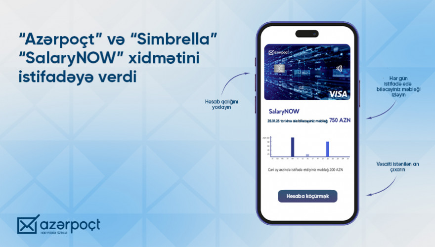 AZCON Holding şirkətlərindən olan “Azərpoçt” MMC beynəlxalq fintex şirkəti olan “Simbrella” ilə birlikdə innovativ maliyyə məhsulu – “SalaryNOW” xidmətini istifadəyə verib.