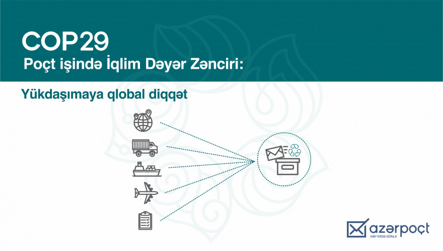 “Azərpoçt” MMC “Poçt işində İqlim Dəyər Zənciri: Yükdaşımalara qlobal diqqət” sessiyasında “İqlim nəzarəti və poçt əməliyyatları” mövzusu ilə çıxış edəcək.