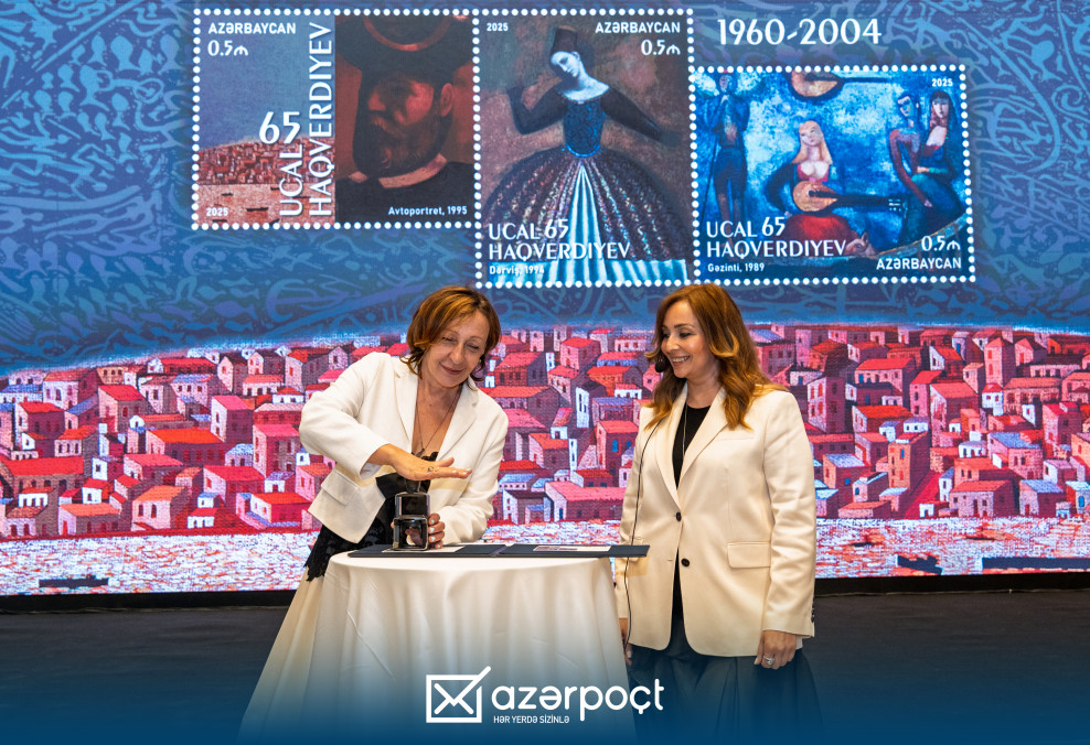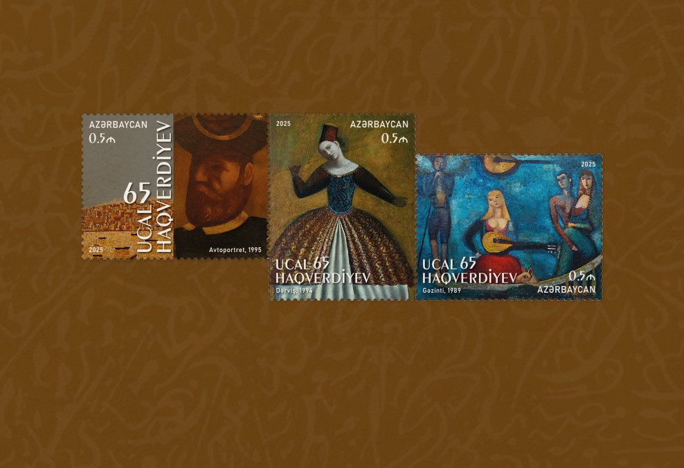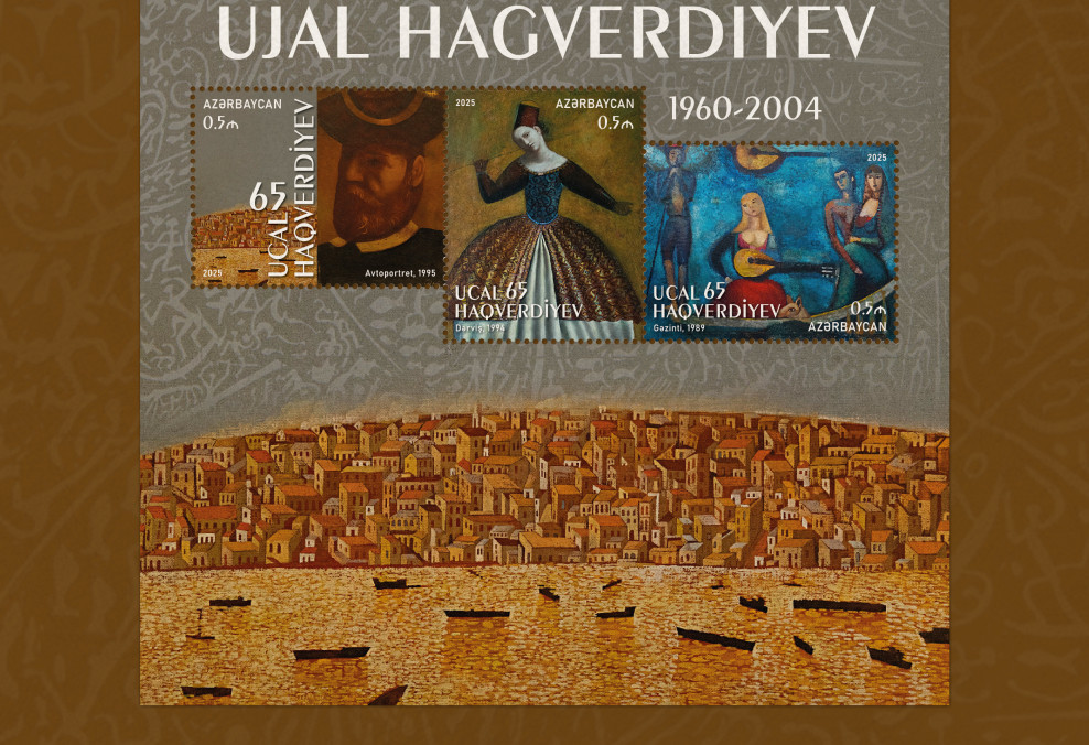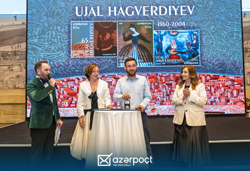 Görkəmli rəssam Ucal Haqverdiyevin 65 illik yubileyi münasibətilə “Azərpoçt” MMC tərəfindən sənətkarın “Avtoportret”, “Dərviş” və “Gəzinti” əsərlərini əks etdirən xatirə poçt markaları hazırlanaraq təqdim olunub.