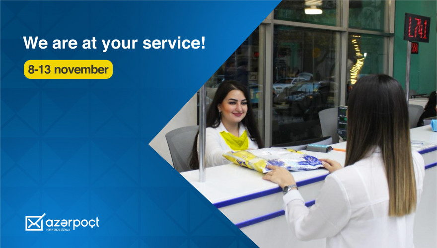 Due to the holidays on 8, 9, 10, 11, 12 and 13 November "Azerpost" LLC will operate in a special mode in order to ensure convenient and efficient use of postal, financial and other cargo services by the population.